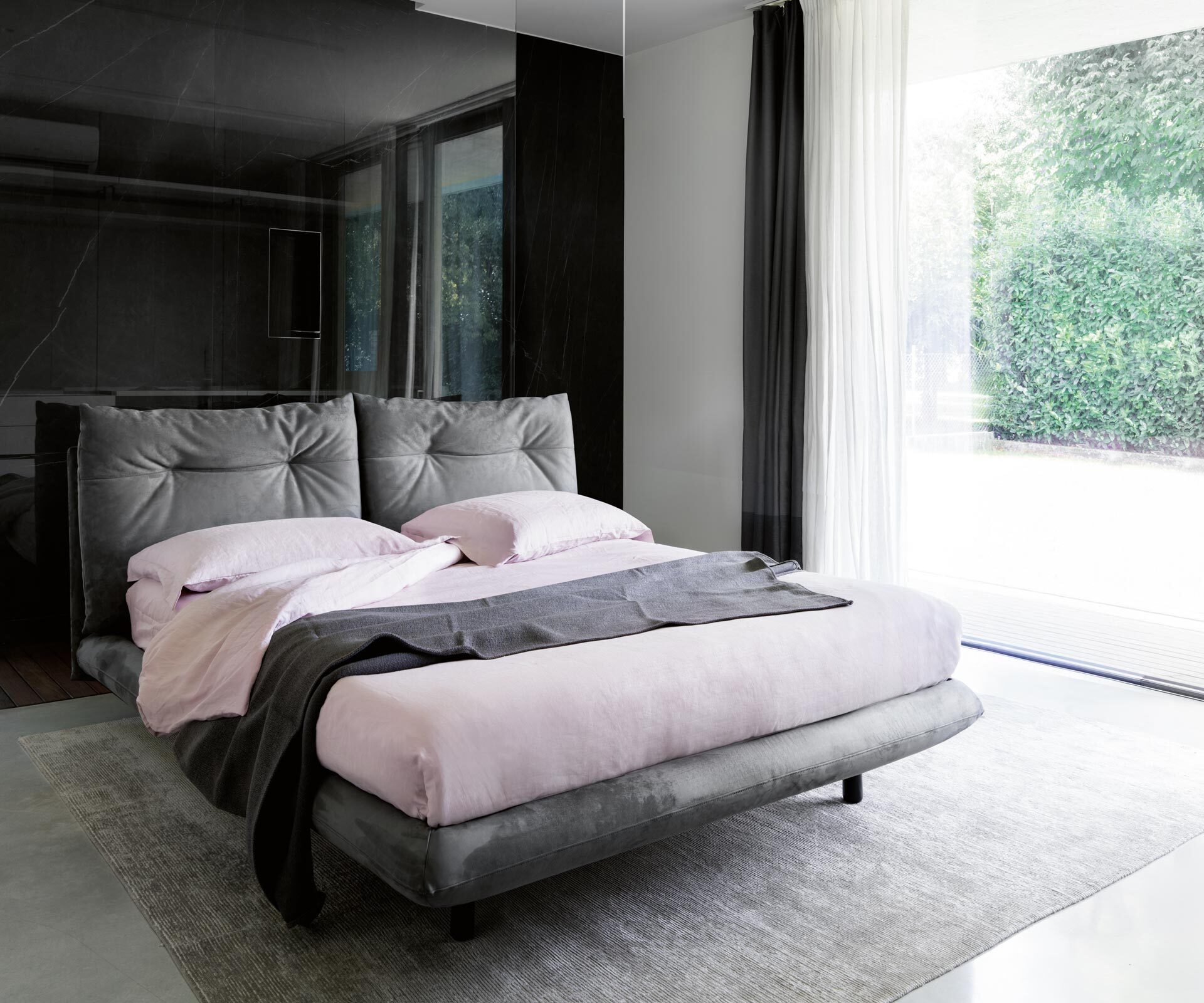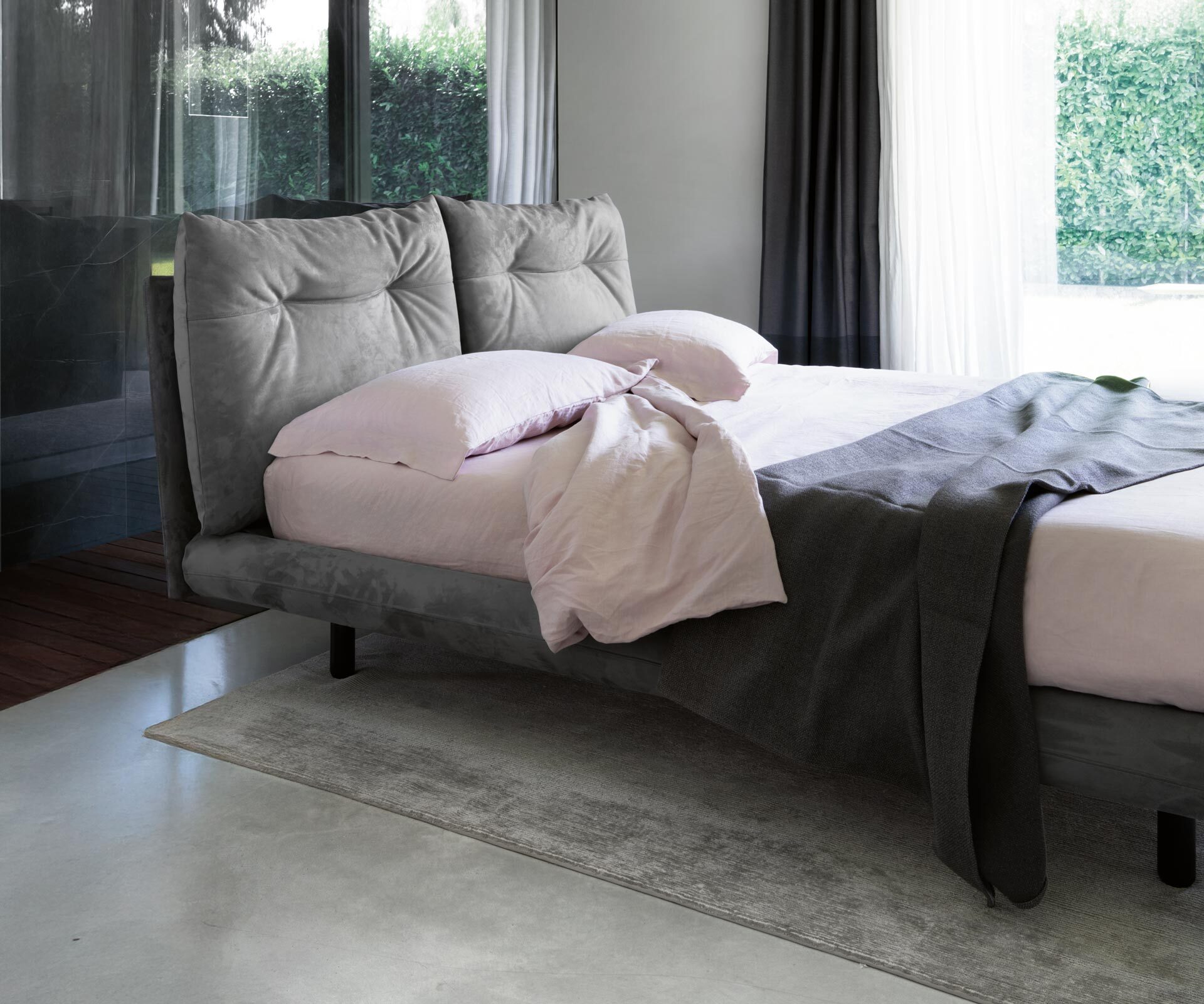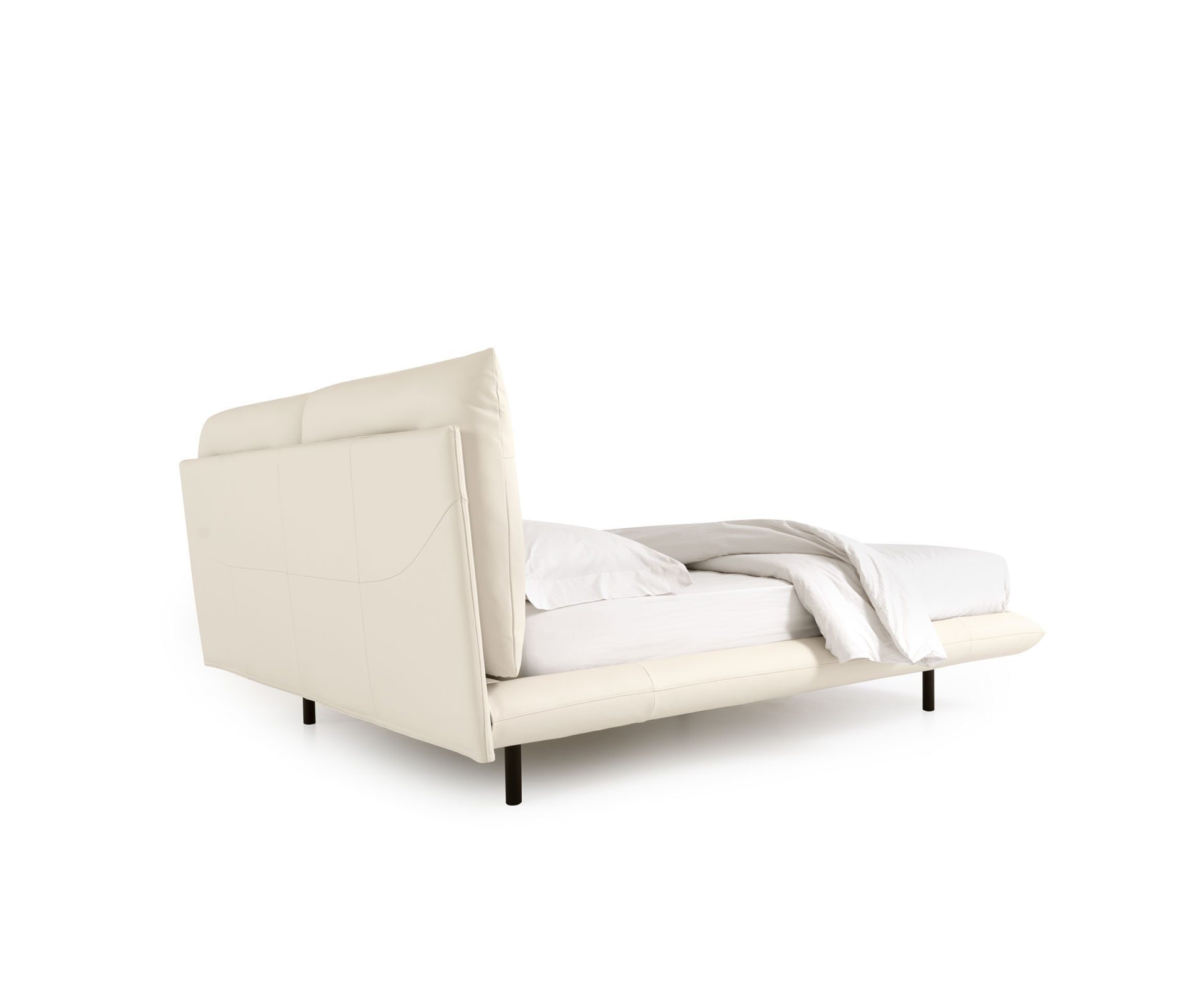 Táto romanticky pôsobiaca posteľ má mäkké vysoké pohodlné čelo. Poťah zakrýva nožičky a splýva až k zemi.