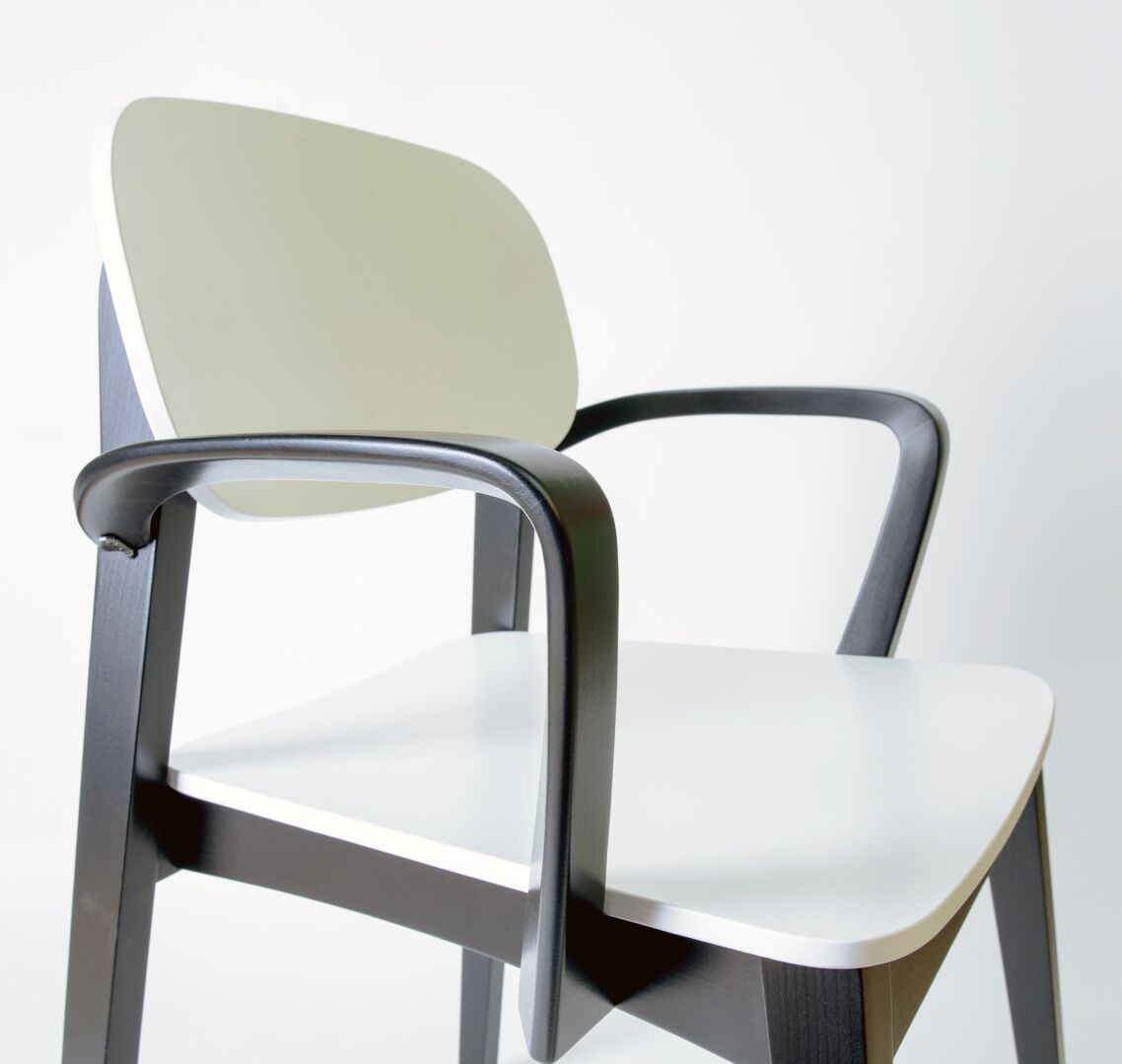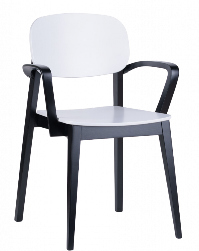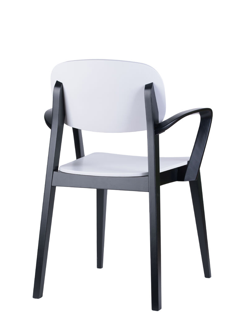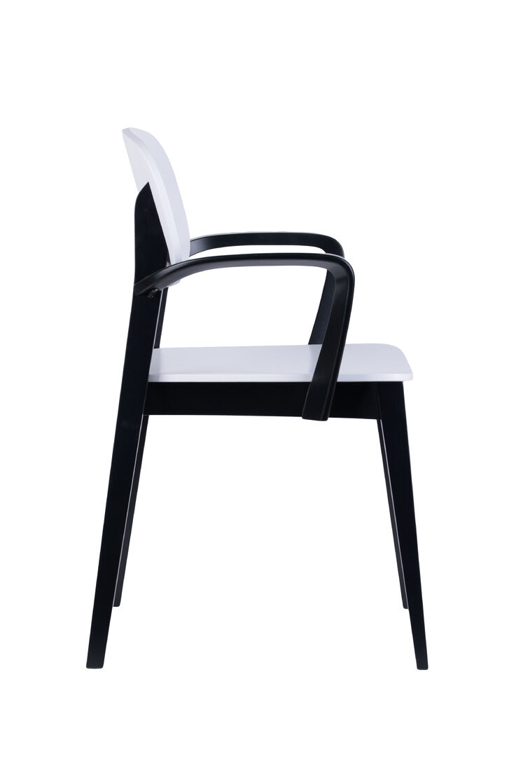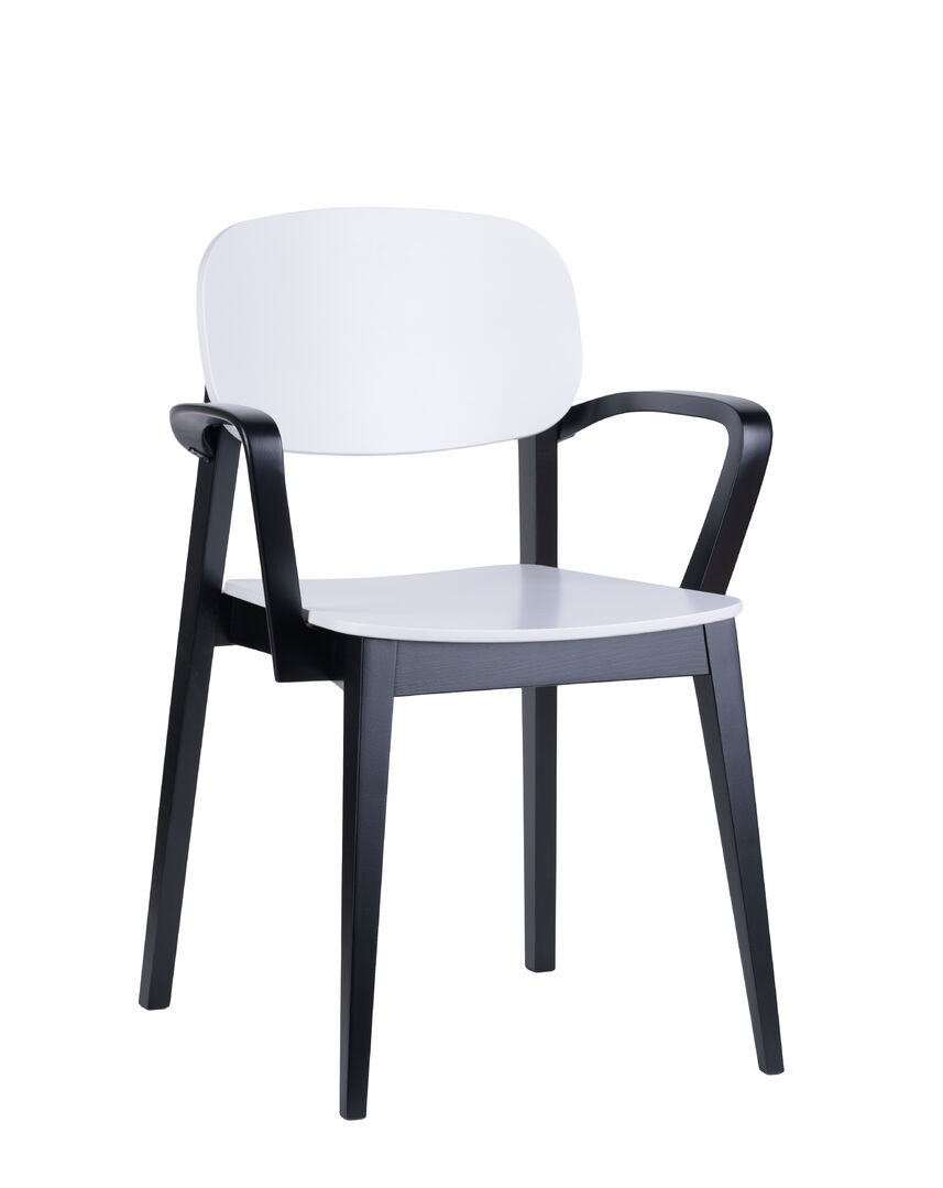 ASIA 2 je čalúnená drevená stolička s podrúčkami, ideálna pre reštauračné či kaviarenské prostredia. Vyrobená je z bukového alebo dubového dreva,