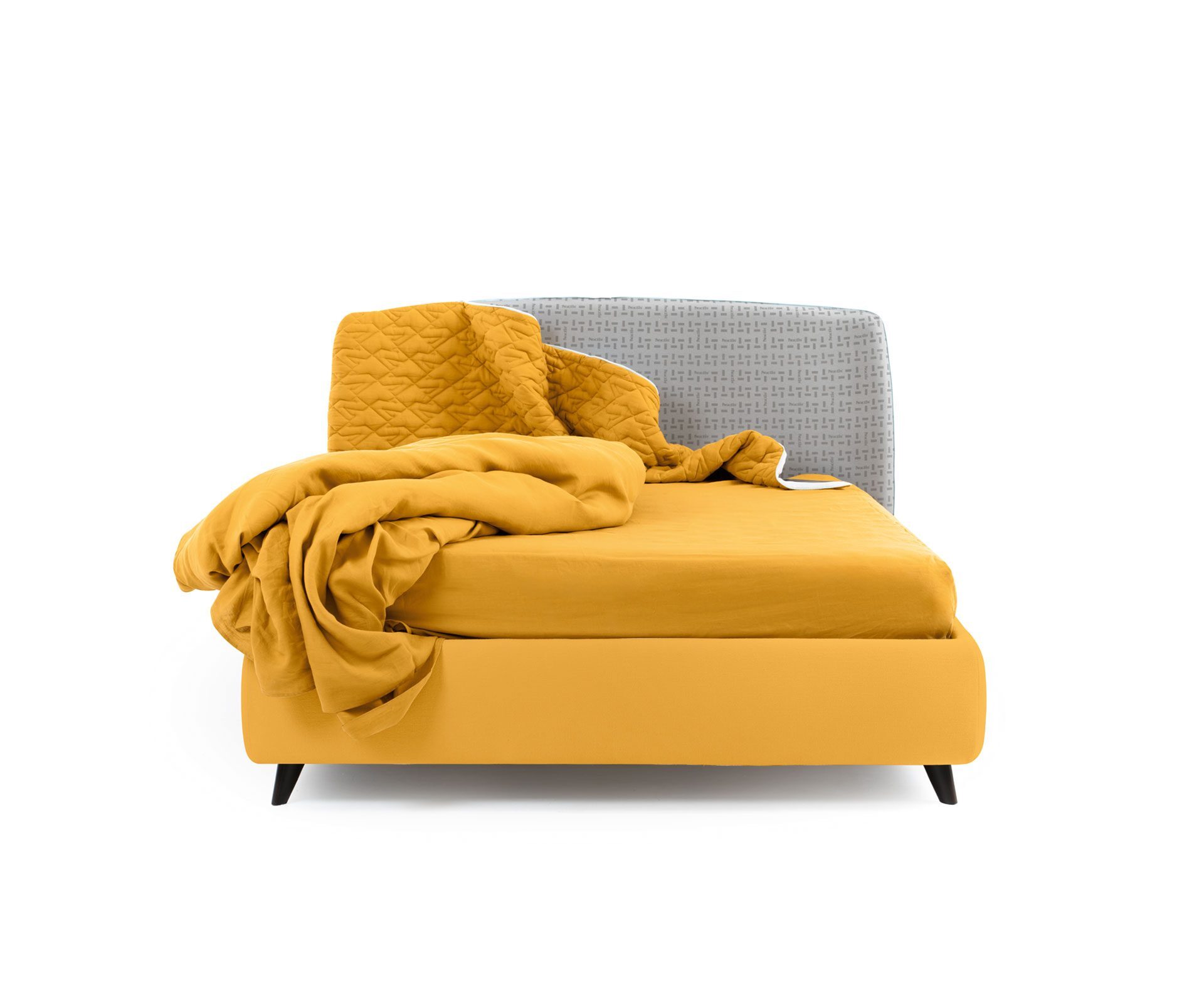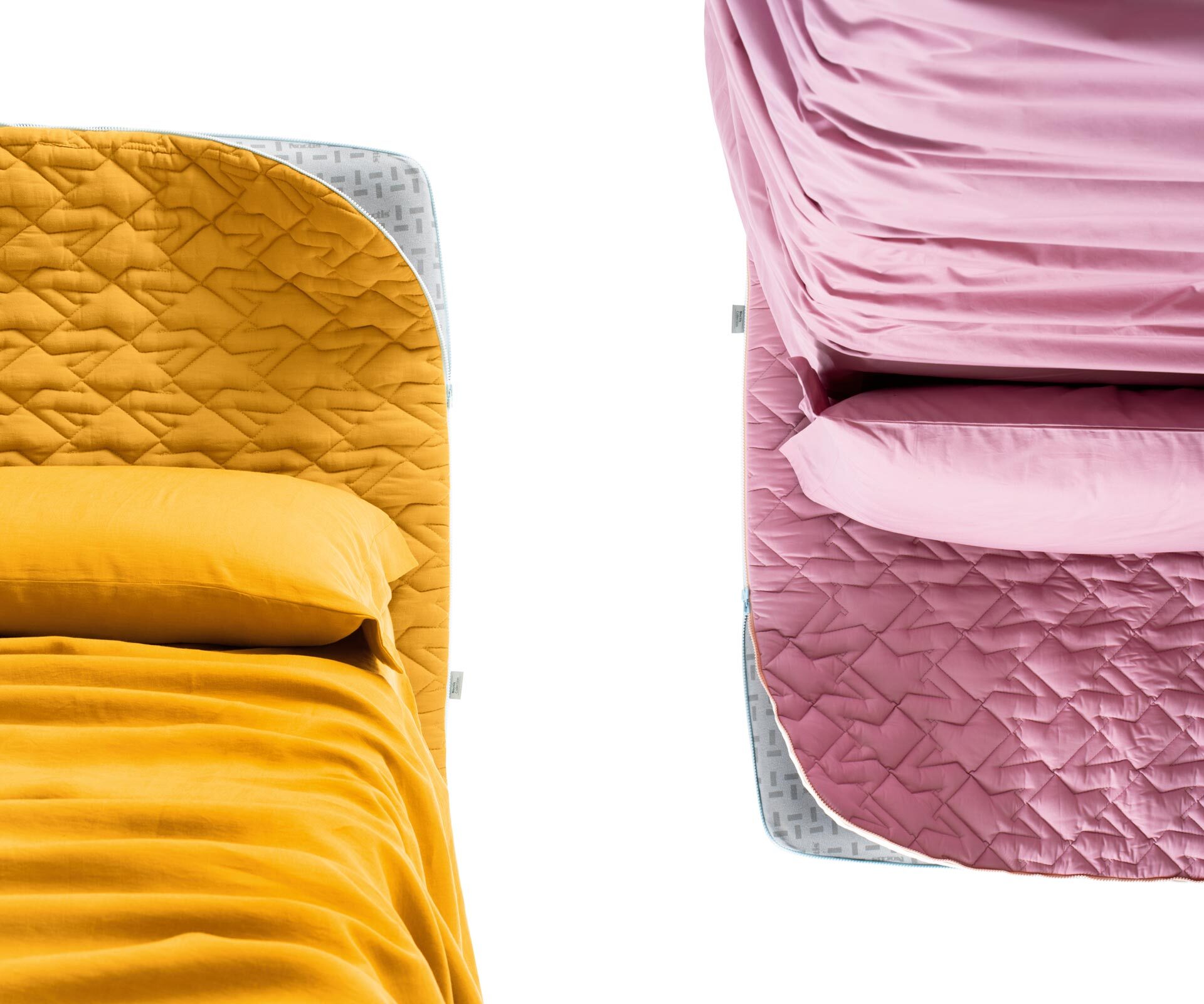 Posteľ Cama je kus nábytku, ktorý spája súčasný dizajn a pokročilú funkčnosť. Jej mierne zaoblené čelo odkazuje na vintage inšpirácie, vďaka čomu pôsobí jemne a útulne. Charakteristickým prvkom je zips vedený po obvode čela, ktorý umožňuje odňať a prispôsobiť prednú časť podľa farebného ladenia.