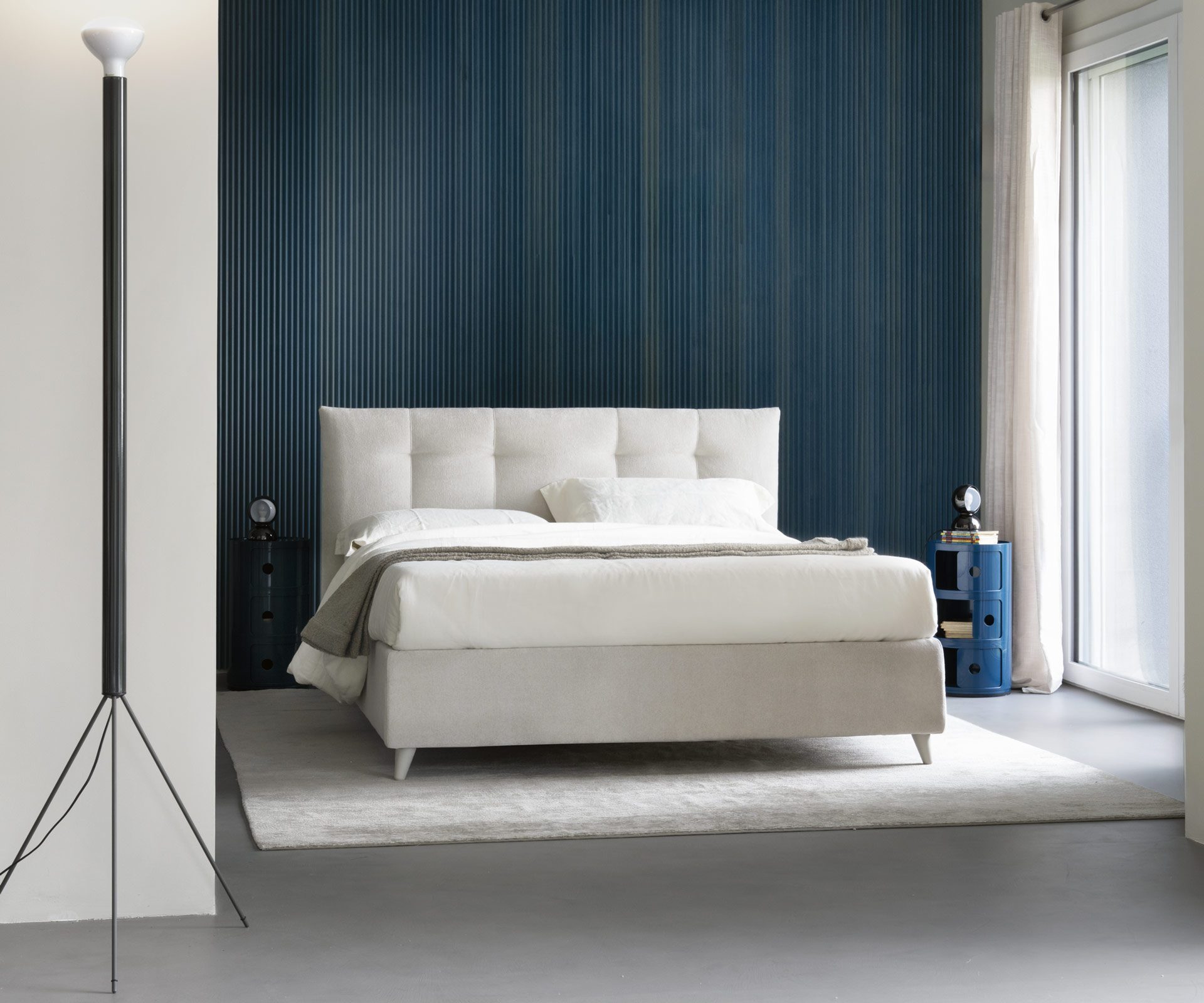 Posteľ FANCY od Noctis prináša spojenie elegantného dizajnu a každodenného komfortu. Vyznačuje sa čalúneným čelom s jemným capitonné prešívaním, ktoré pôsobí mäkko a útulne, no zároveň si zachováva kompaktné rozmery vhodné aj do menších priestorov.