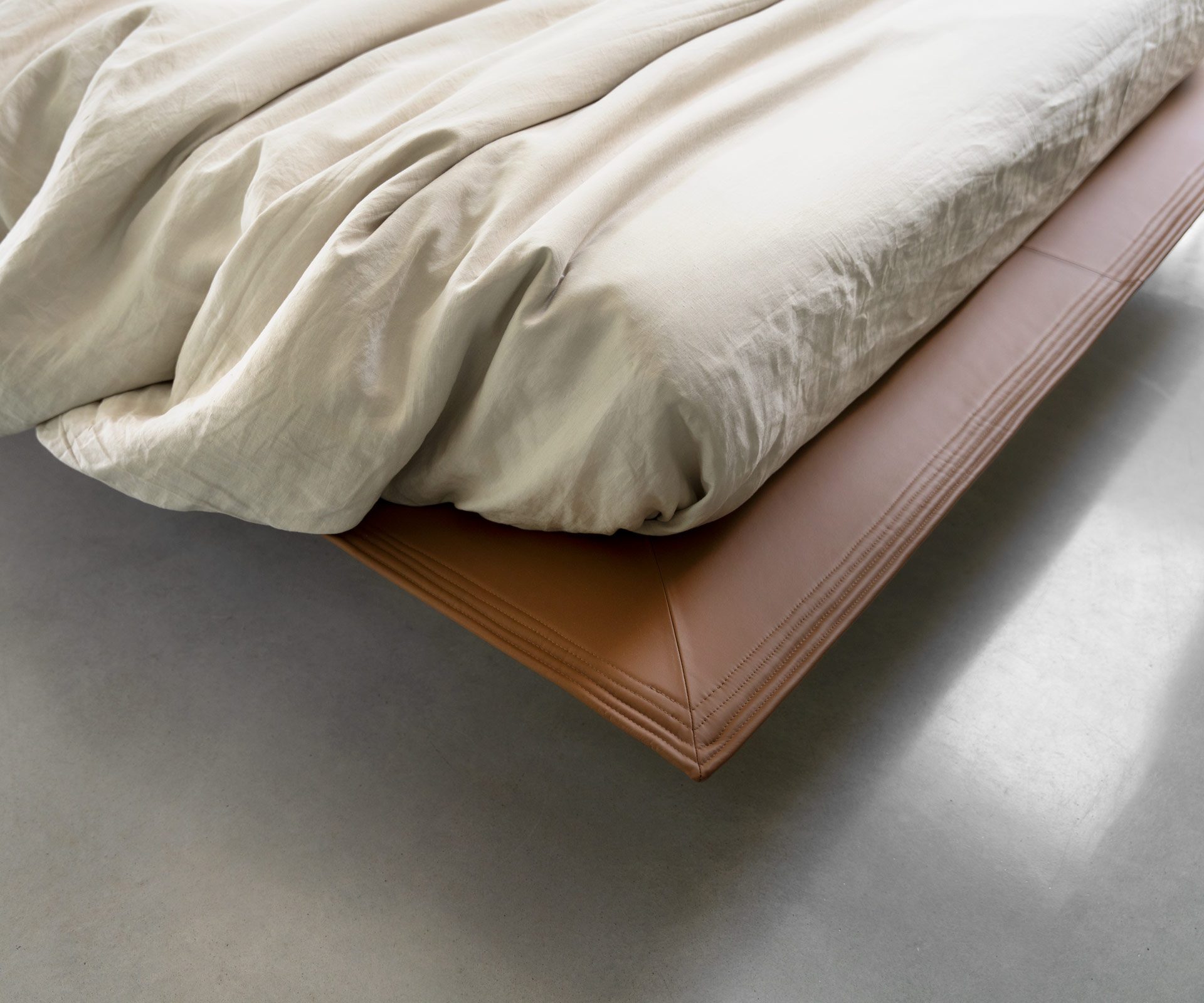 Nadčasový dizajn pre tých, ktorí chcú spať akoby medzi snom a realitou. Vďaka subtílnej základni a zapusteným nožičkám pôsobí posteľ dojmom, že sa vznáša – ľahko, takmer étericky.