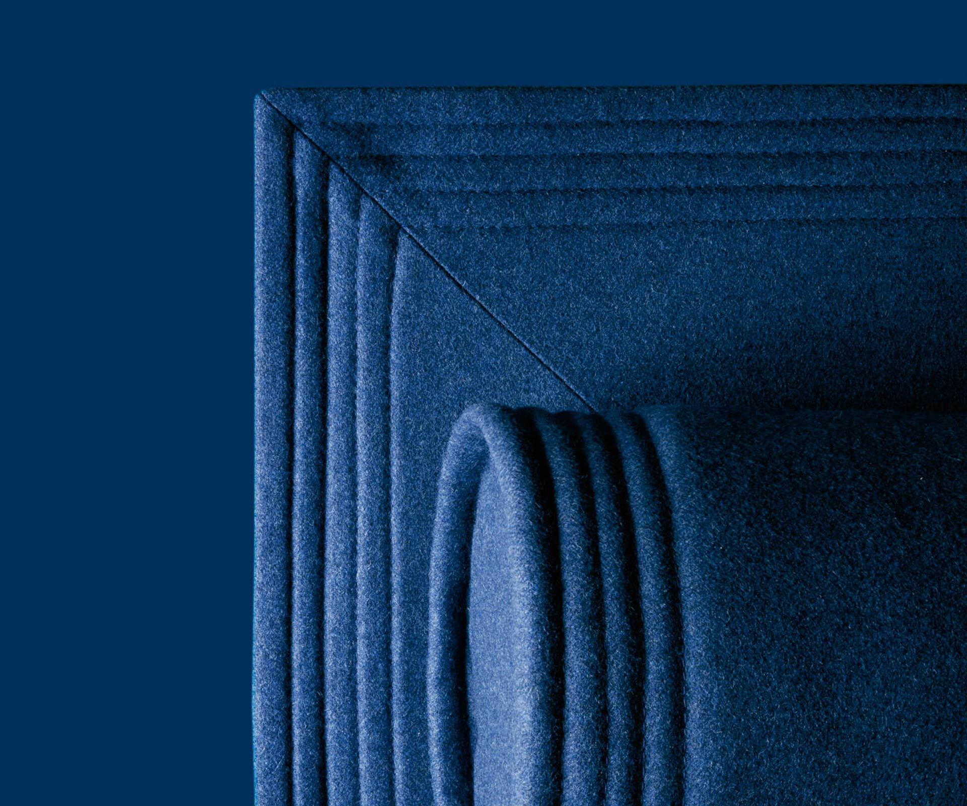 Jedinečnosť Flaminga sa však ukrýva v detailoch. Celý obvod lemuje precízny trojitý steh, ktorý zvýrazňuje kvalitu látky Nord Wool – jemnej vlnenej tkaniny, elegantne obopínajúcej celú konštrukciu. Dve valcové čelá, taktiež potiahnuté látkou Nord Wool, v sebe skrývajú praktickú funkciu: vďaka push-up systému ich možno jednoduchým pohybom zdvihnúť a prispôsobiť si tak pohodlie pri oddychu.