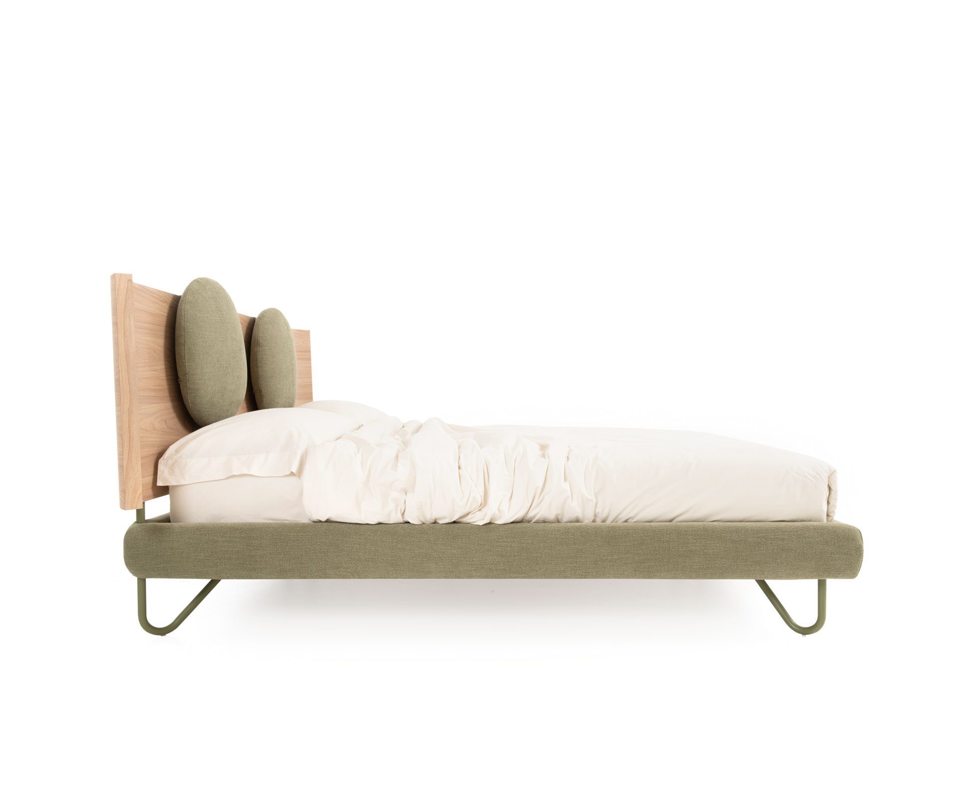 Hug One je stelesnením objatia v jeho najčistejšej podobe – príklad inovatívneho dizajnu, ktorý sa vyznačuje zaobleným, obopínajúcim čelom postele poskytujúcim maximálne pohodlie vďaka dvom okrúhlym odnímateľným vankúšom s poťahmi v rovnakom materiáli. Ide o hru oblých línií a nekonečných možností kombinácie a prispôsobenia.