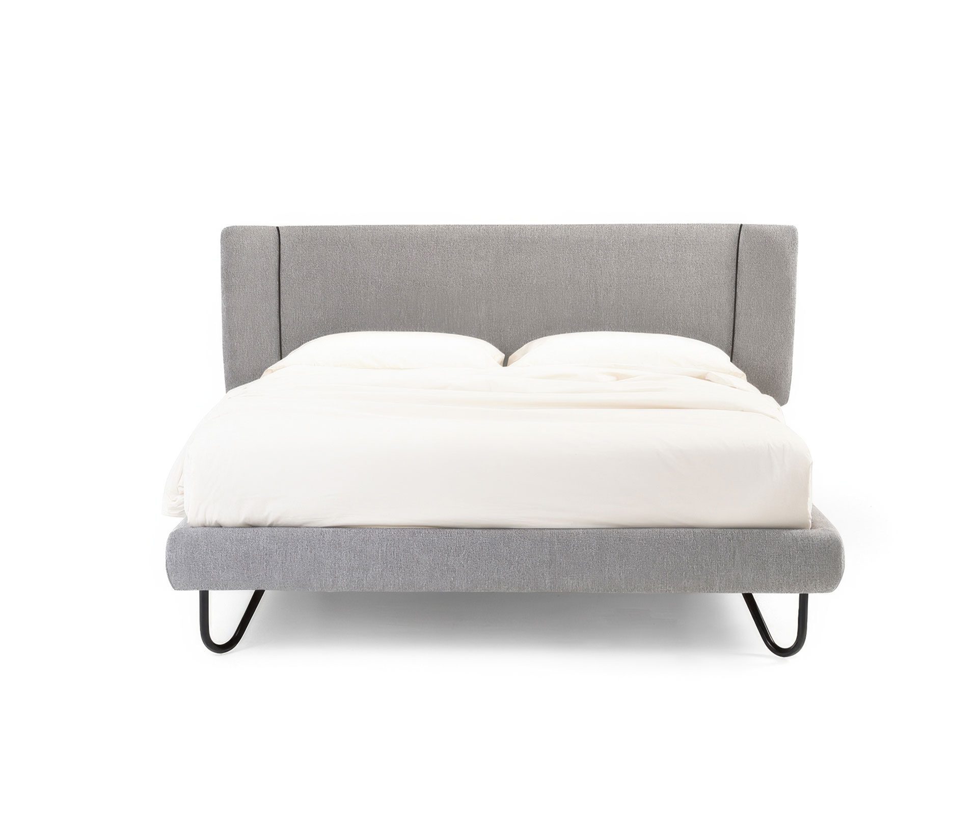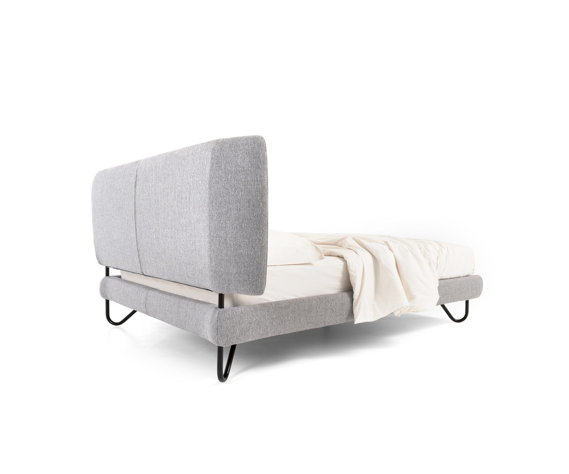 Hug Two od Noctis sa vyznačuje polkruhovým čalúneným čelom postele, ktoré zdobí jemný kontrastný lem zladený s farbou kovových nožičiek dostupných v rôznych povrchových úpravách. Posteľ je plne snímateľná (vrátane poťahov) a možno ju čalúniť látkou, ekokožou alebo kožou, čo ponúka široké možnosti personalizácie.