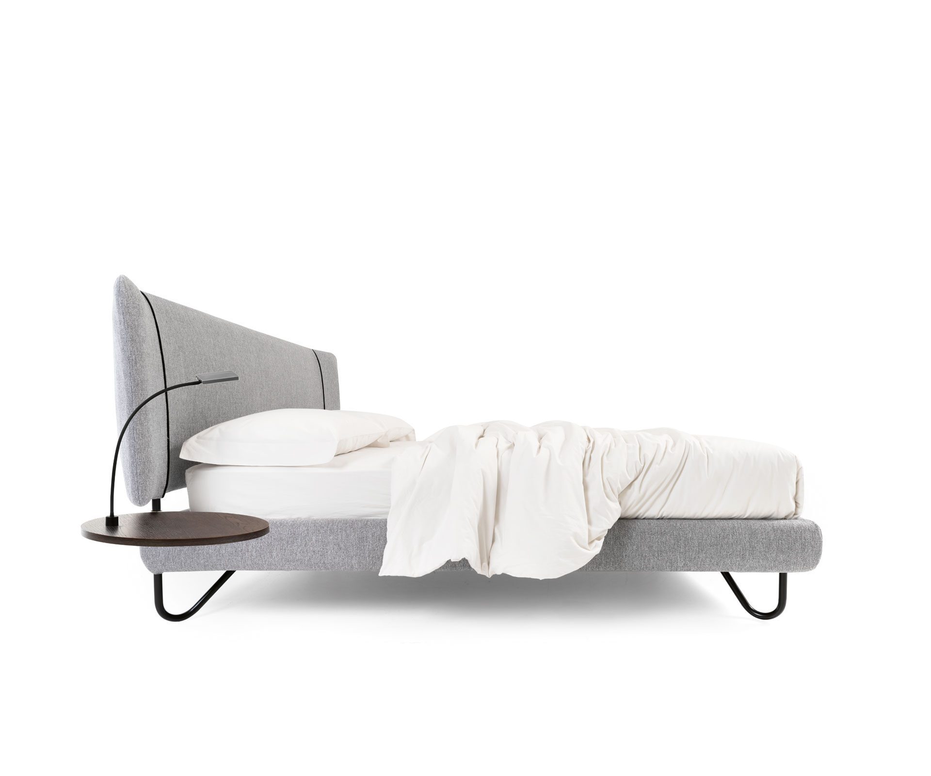 Hug Two je dostupná aj s dreveným čelom v prevedeniach White, Wenge, Walnut a Natural. Možno ju doplniť o zladený nočný stolík a lampu Sinuè v bielej alebo čiernej farbe. Kovové nožičky, ktoré patria medzi výrazné dizajnové prvky modelu, je možné farebne prispôsobiť, čo umožňuje takmer neobmedzené možnosti kombinovania v interiéri.