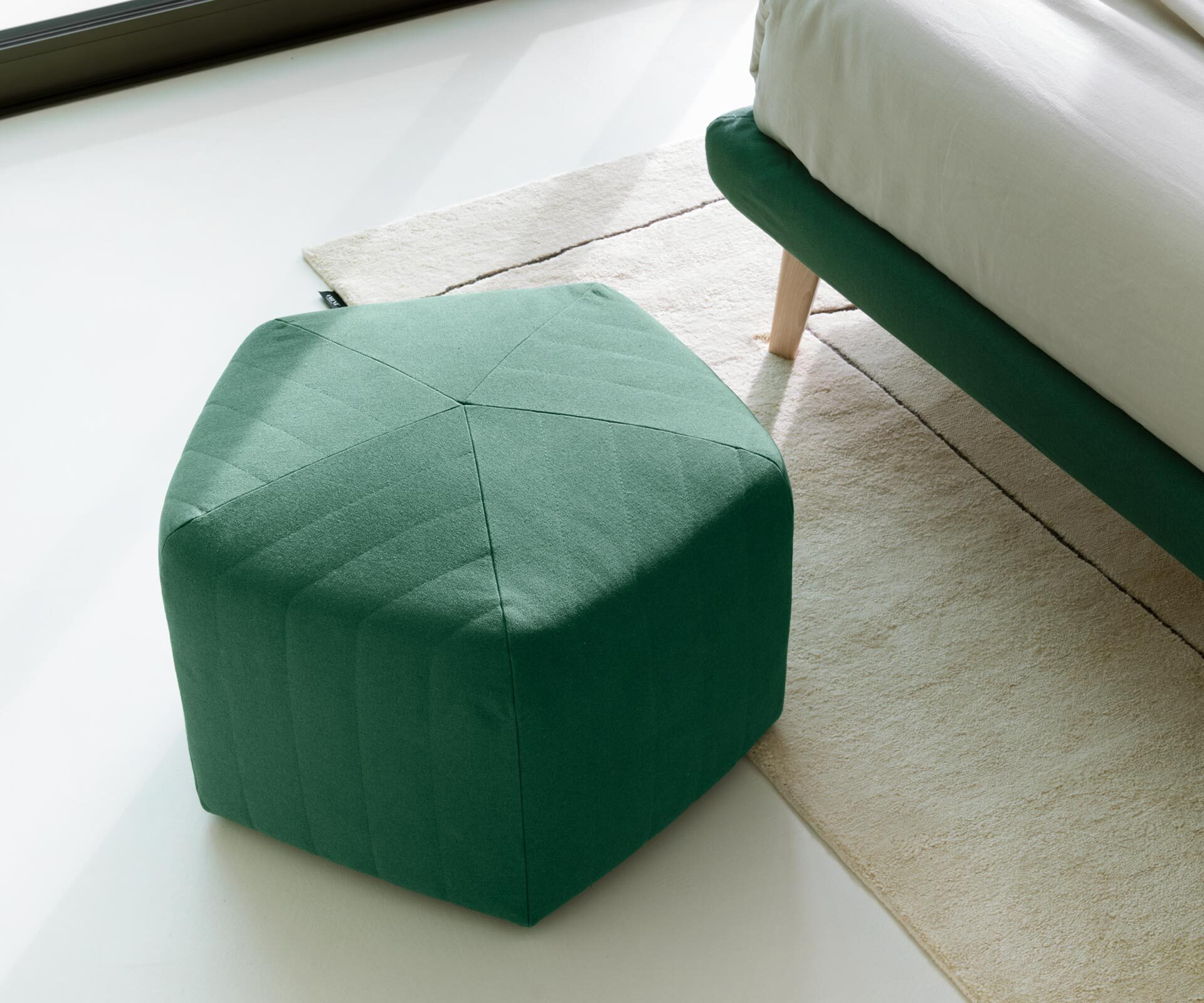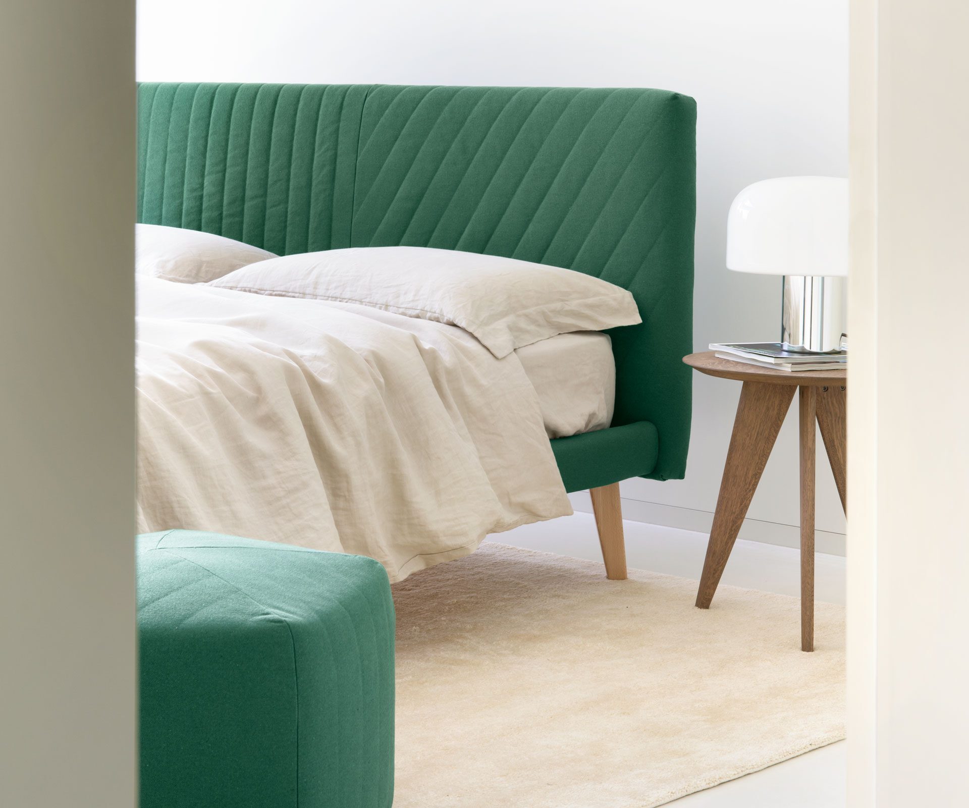 Kira, inšpirovaná severským dizajnom, sa vyznačuje prešívaným čelom s prúžkovaným efektom a je jedinou posteľou v kolekcii Noctis, ku ktorej patrí aj ladiaci taburet (pouf). Je k dispozícii vo verzii s nízkym aj vysokým rámom a predstavuje triezve, no elegantné riešenie do spálne.
