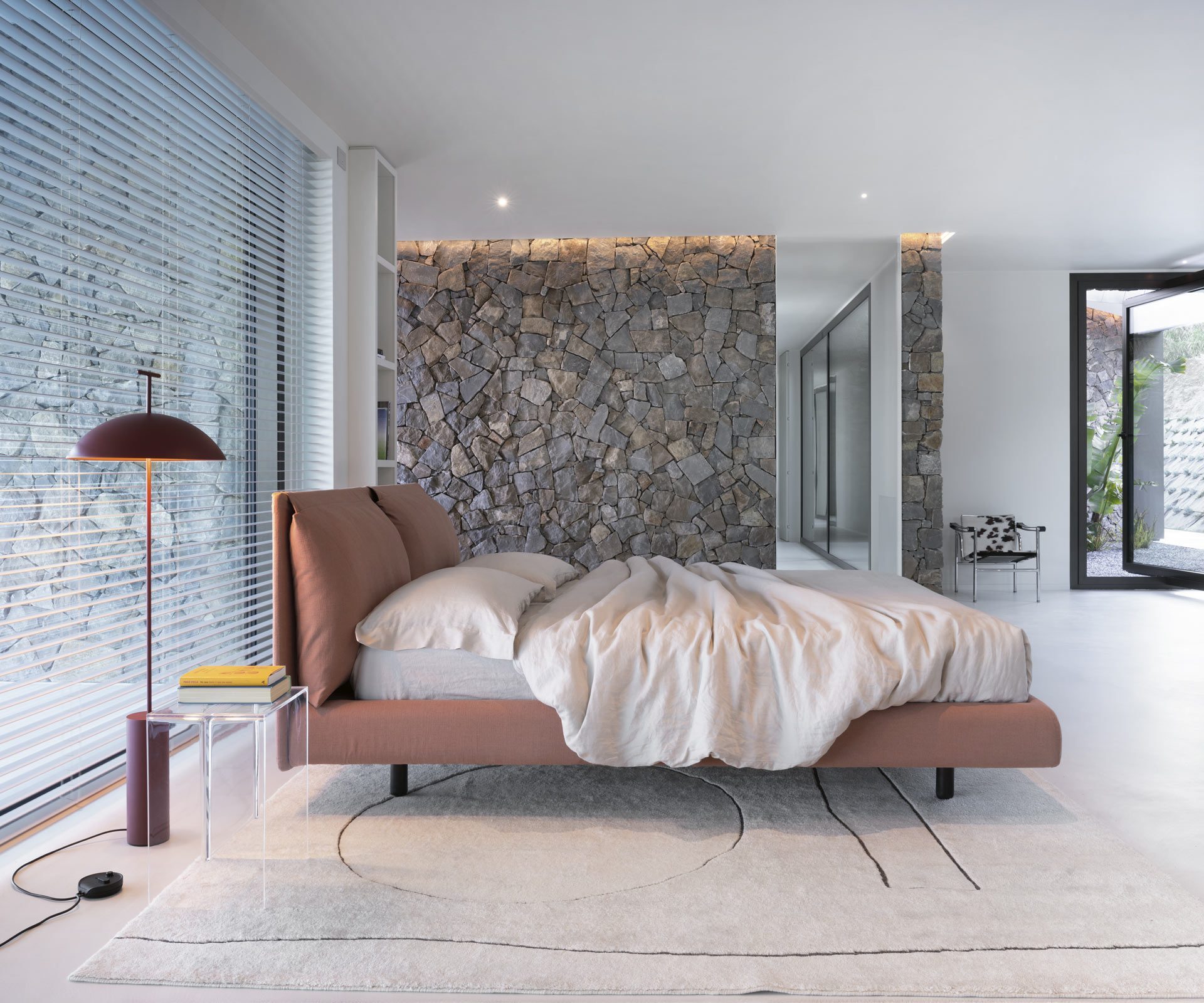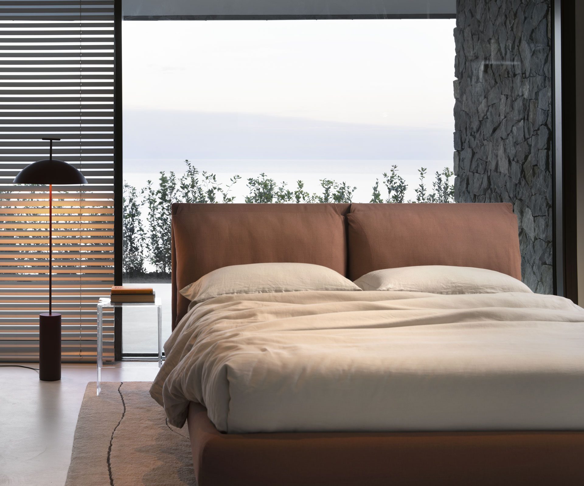 Malou je elegantná a rafinovaná posteľ, ktorá vyniká svojimi modernými líniami a dôrazom na maximálne pohodlie, zabezpečené mäkkými objemami a polohovateľnými vankúšmi. Je dostupná v rôznych rozmeroch a s vysokým alebo nízkym rámom postele.