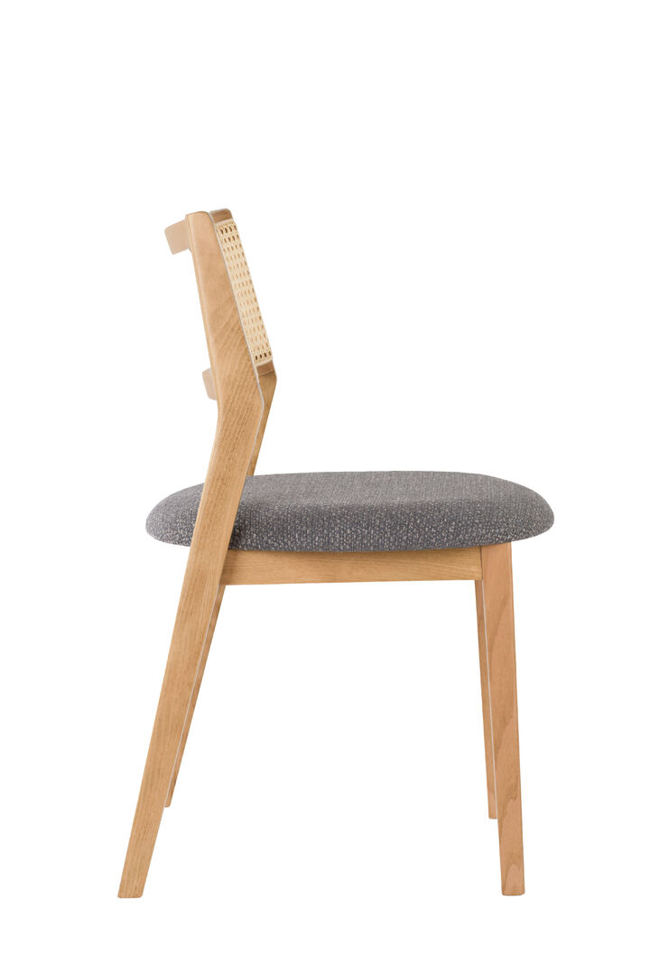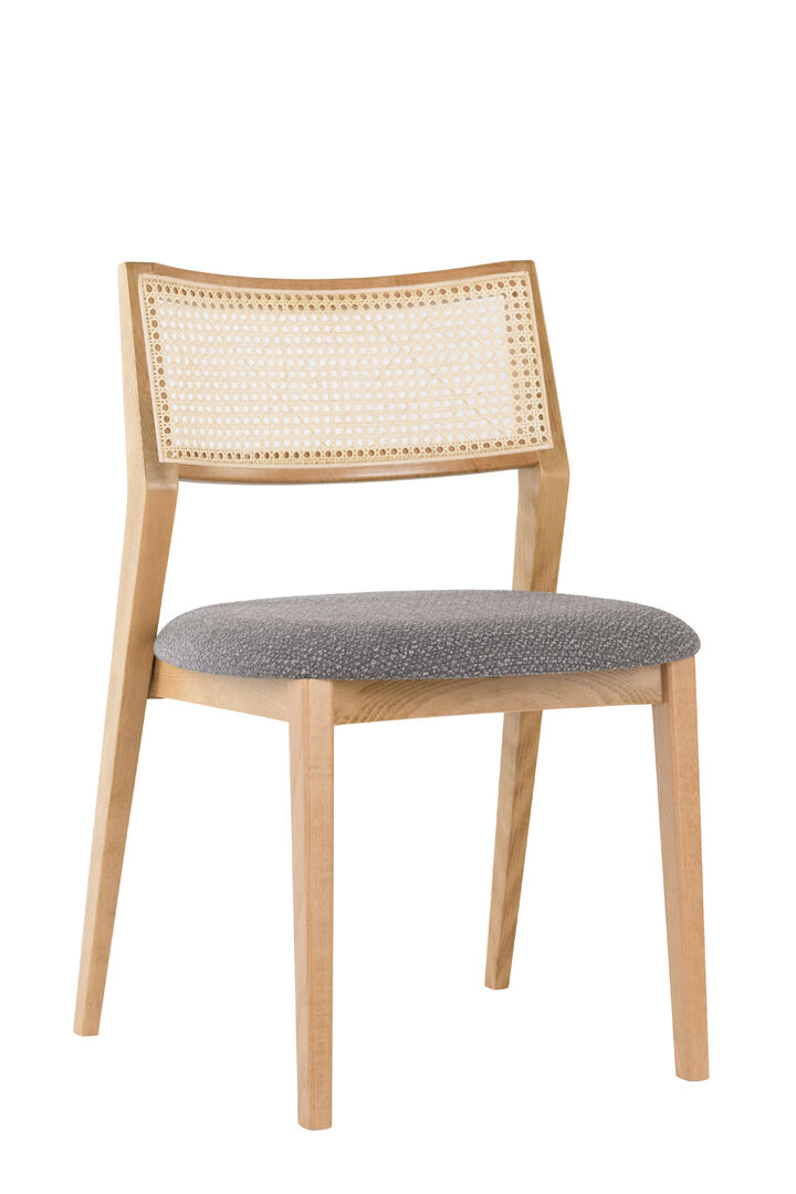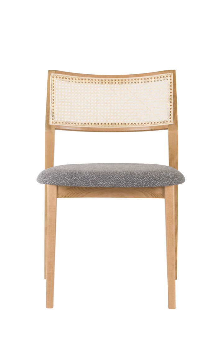 MILES je elegantná stolička vo viedenskom štýle, vyrobená z ohýbaného bukového alebo dubového dreva s charakteristickým ratanovým výpletom na operadle a čalúneným sedákom v rôznych látkových prevedeniach.