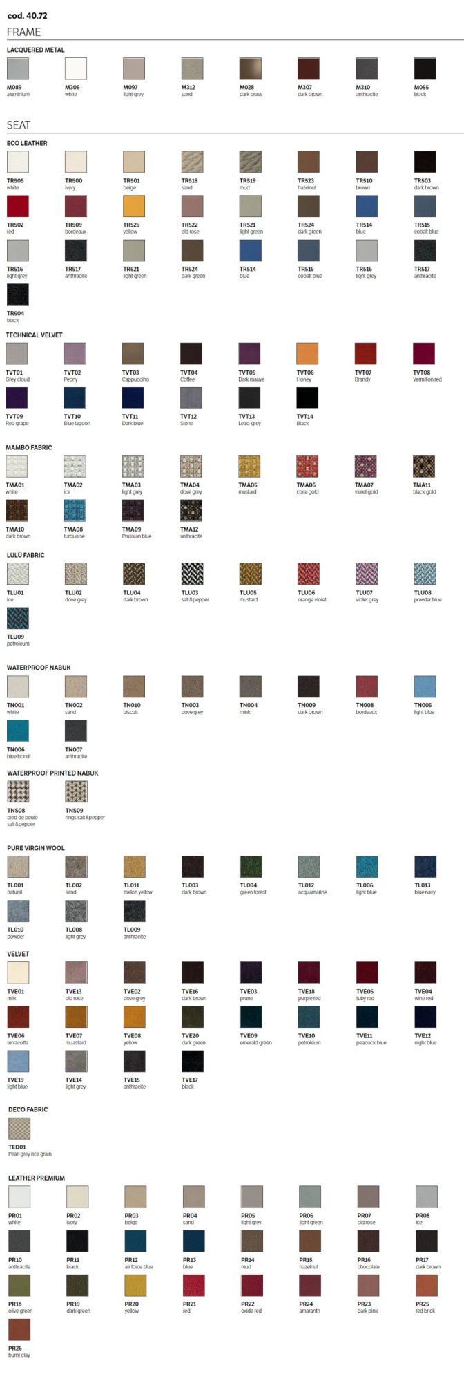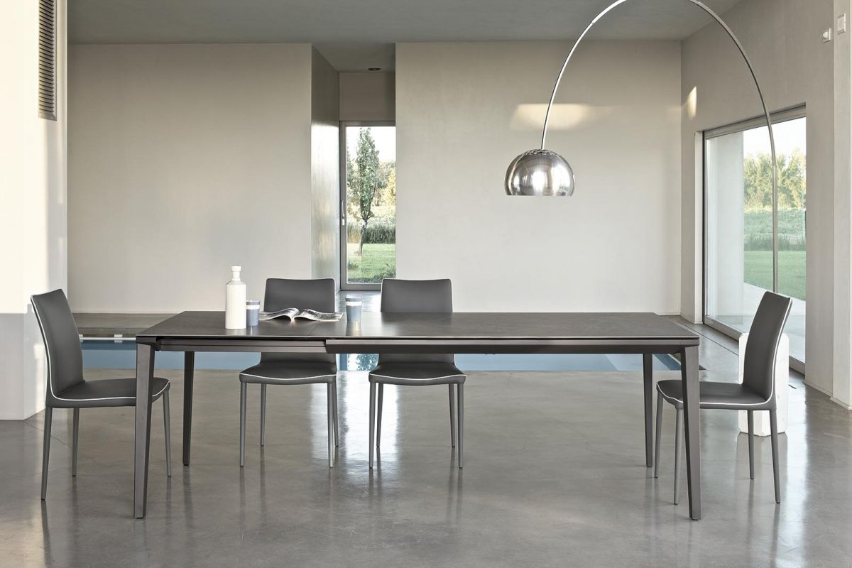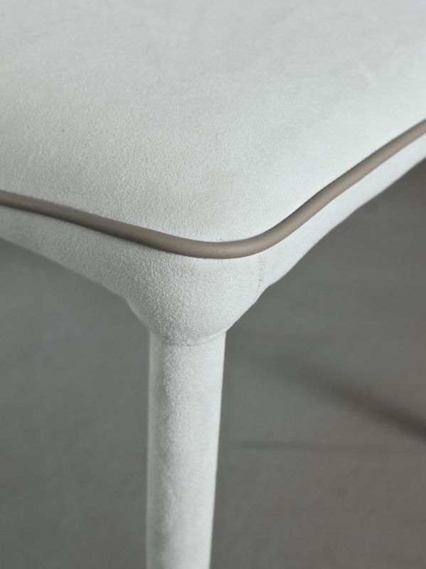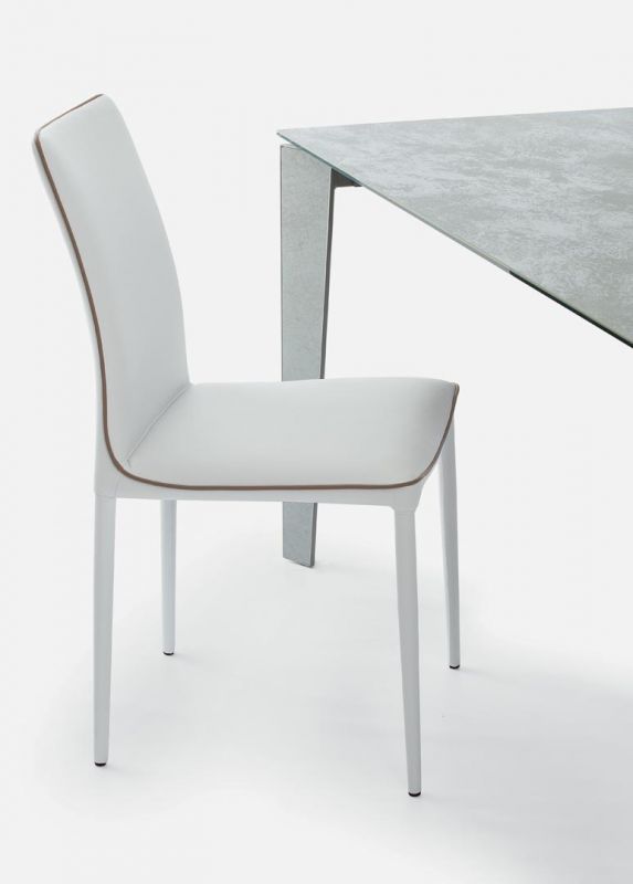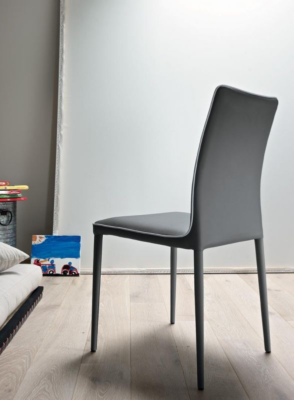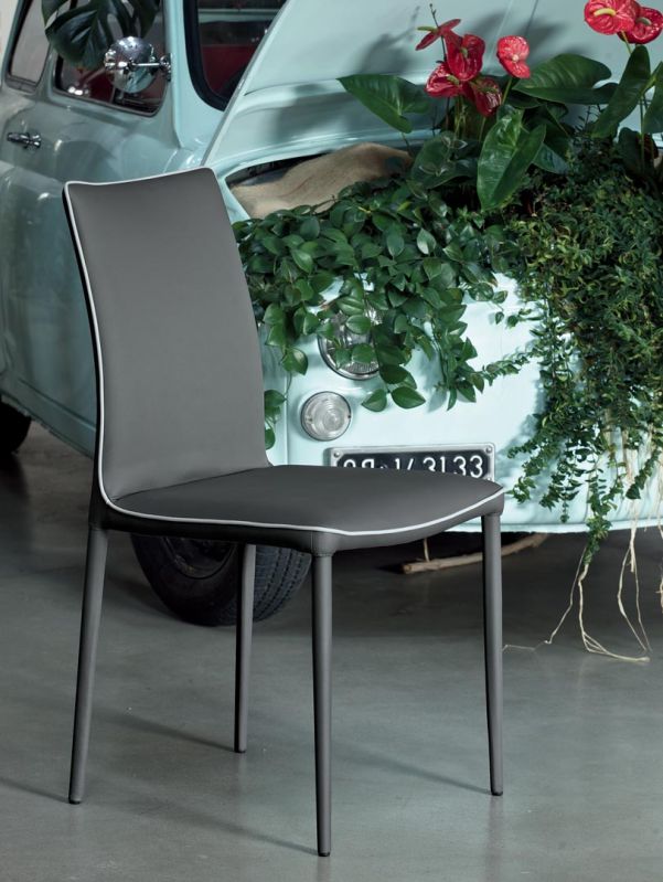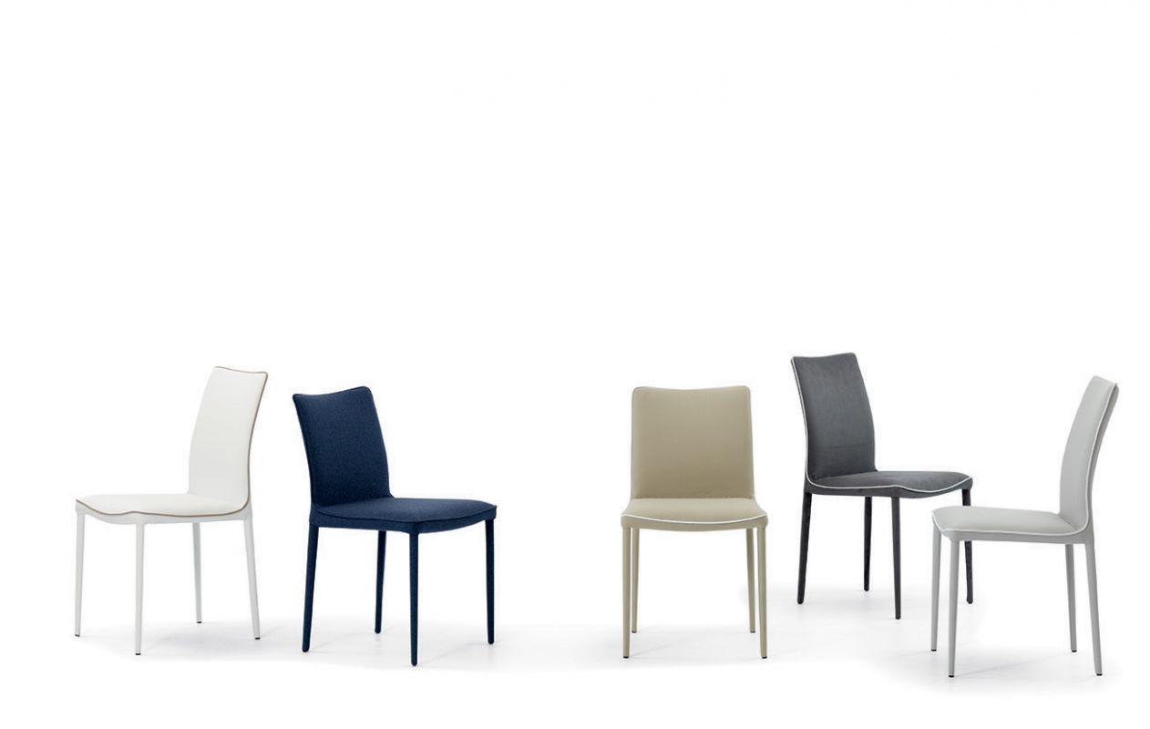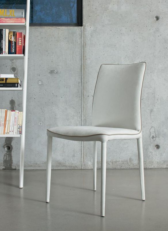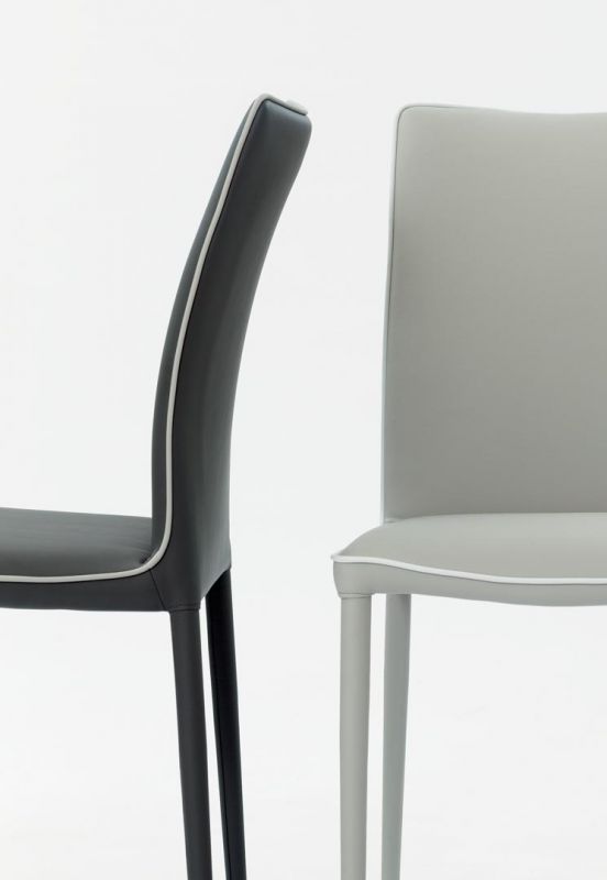 Moderná talianska stolička charakterizovaná čistými líniami, ktoré ozvláštňuje kontrastný lem. Jedálenská čalúnená stolička s kovovým rámom, môže byť očalúnená látkou, ekologickou kožou, technickým zamatom, vodotesnou látkou Nabuk, čistou panenskou vlnou, prémiovou kožou Nappa, látkou Mambo, látkou Lulù, látkou Decò a zamatom. Lemovanie môže mať zodpovedajúcu farbu alebo kontrastnú farbu. K dispozícii aj vo verzii s prešívaným operadlom (iba pre vodotesné čalúnenie Nabuk, ekologickú kožu a kožu Premium Nappa).