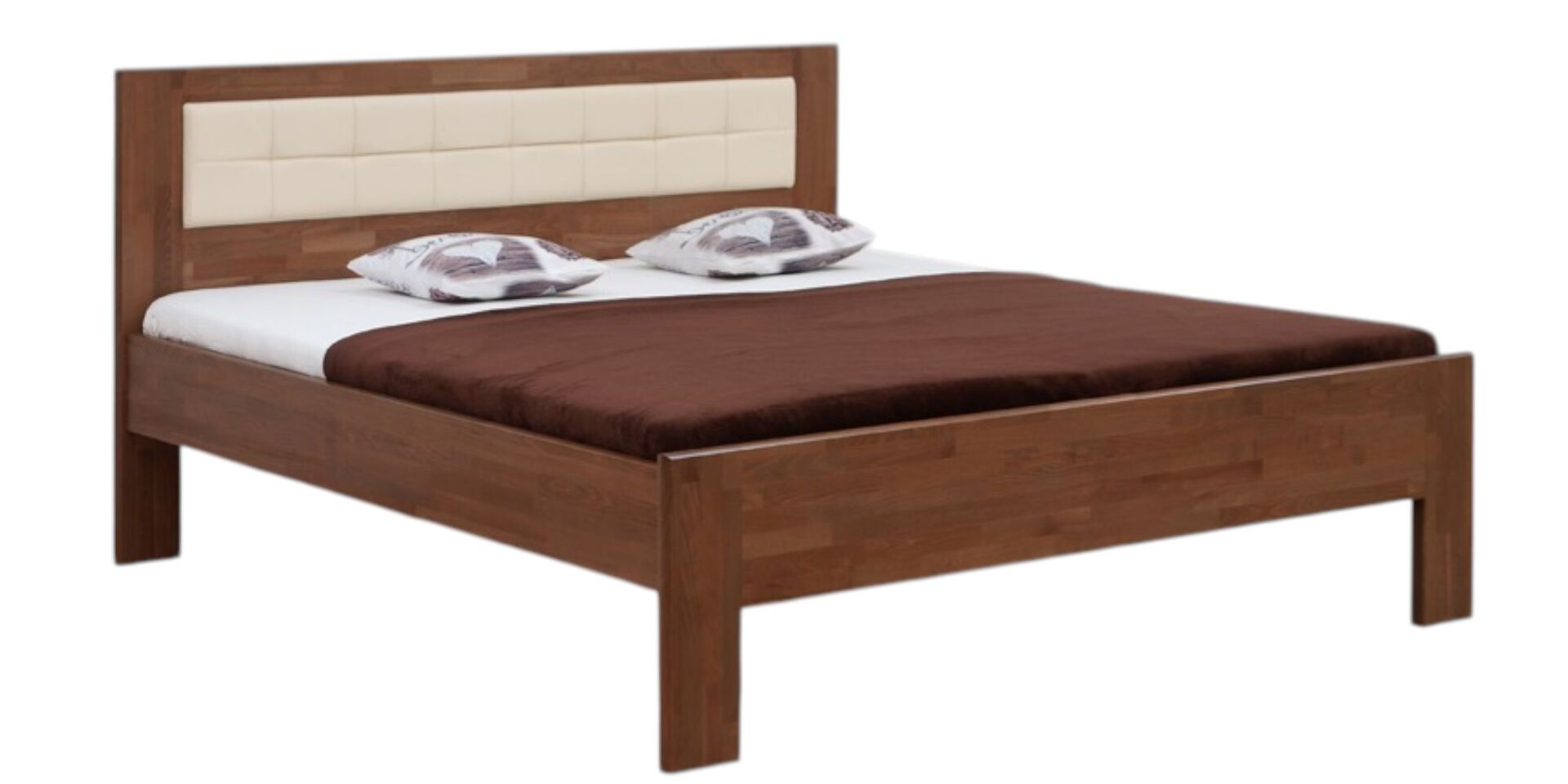 Drevená posteľ s čalúneným čelom spája v sebe praktické využitie s dokonale prepracovanými líniami.