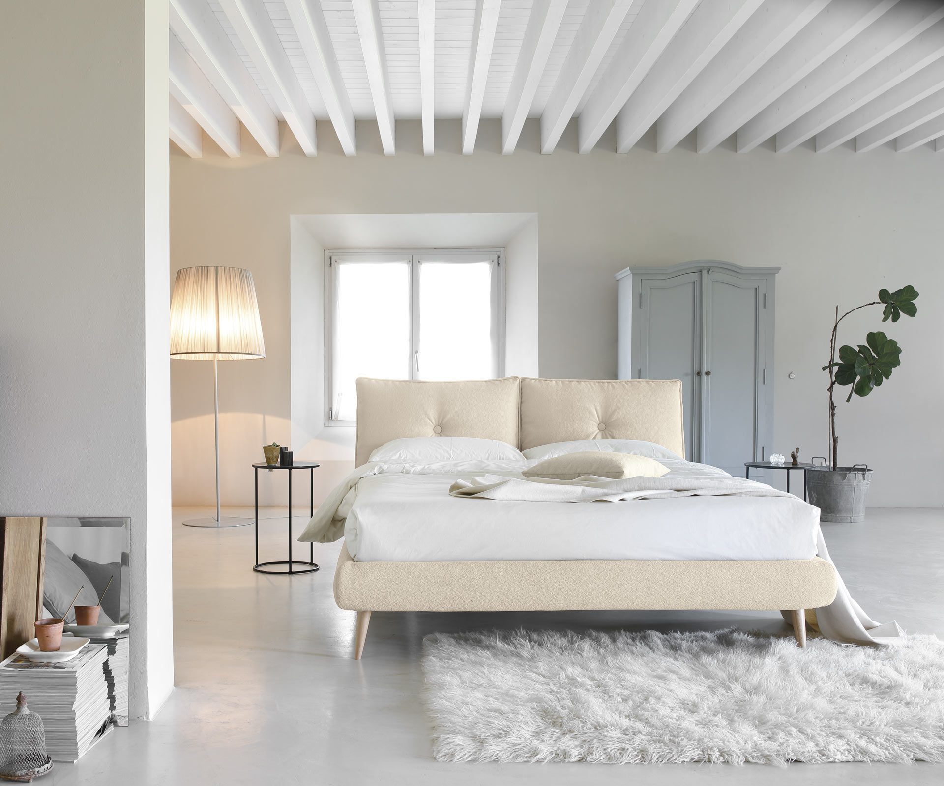 SO Lively je synonymom charakteru a hravosti. Jej vankúše zdobené centrálnym gombíkom a jemným lemovaním po obvode prinášajú živý a originálny vzhľad. Farebne ich možno prispôsobiť – buď v rovnakom tóne ako posteľ, alebo v kontraste pre výrazný a dynamický efekt