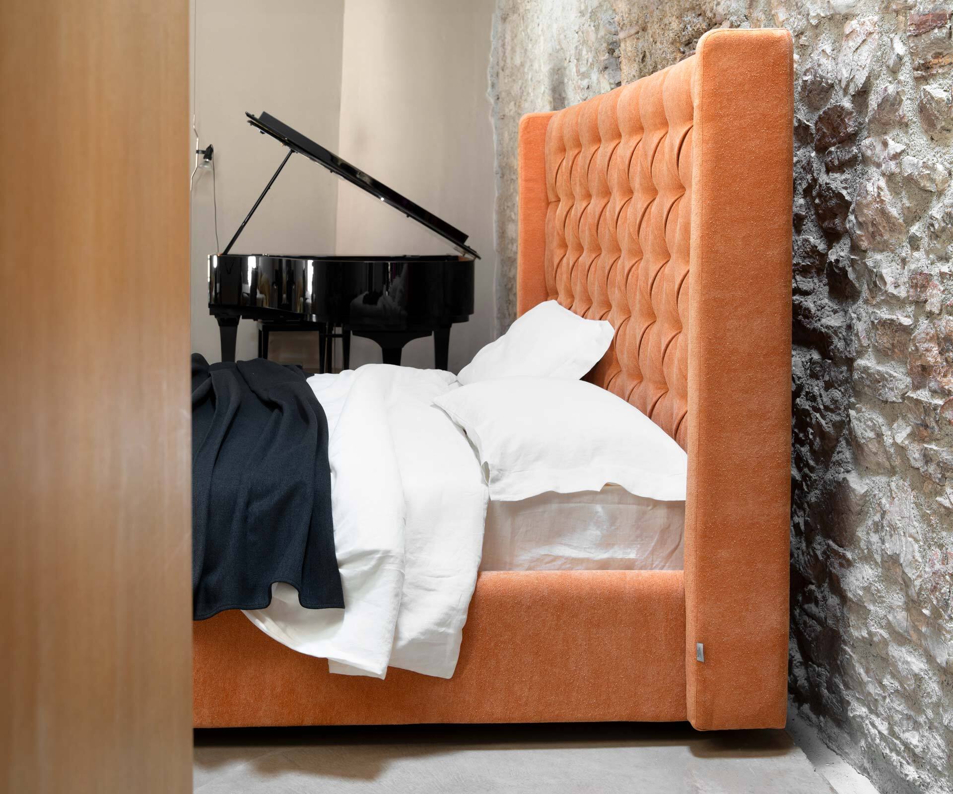 Star – sú to detaily, ktoré premieňajú jednoduché na výnimočné a obyčajné na jedinečné. Každá línia, každé zakrivenie je navrhnuté s maximálnou presnosťou s cieľom vytvoriť nielen kus nábytku, ale príbeh, ktorý stojí za to rozprávať. Posteľ navrhnutá architektom Salvatore Izzo vyniká svojou majestátnosťou, ktorá vychádza z precíznych detailov aplikovaných na prísne elegantné línie. Dominantné čelo postele, charakteristické precíznym capitonné prešívaním, je kompletne ručne vyrábané skúsenými remeselníkmi.